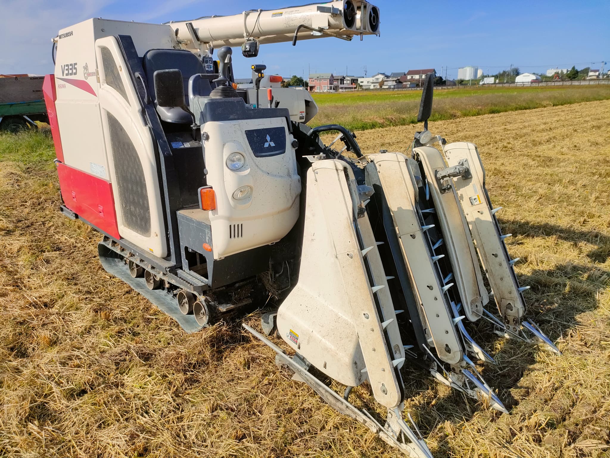 コンバインのクローラーが田んぼの中で切れてしまったりとトラブルも有りました。