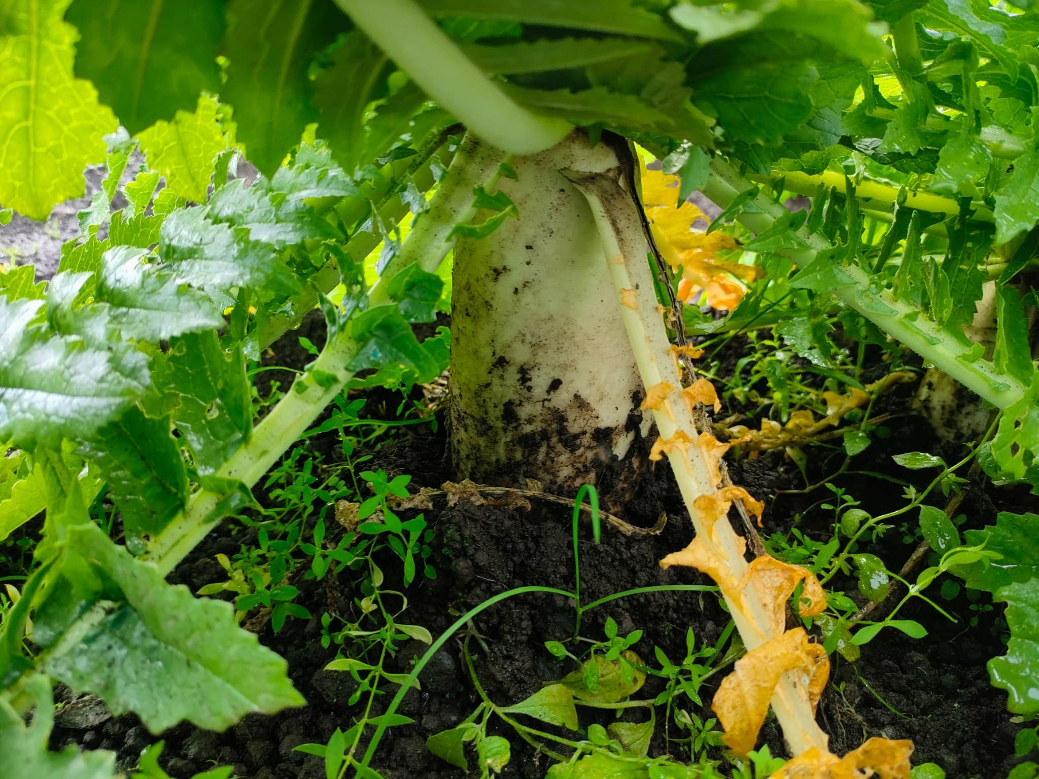 注意点として、葉を切る場合は根元まで切らないようにしています。