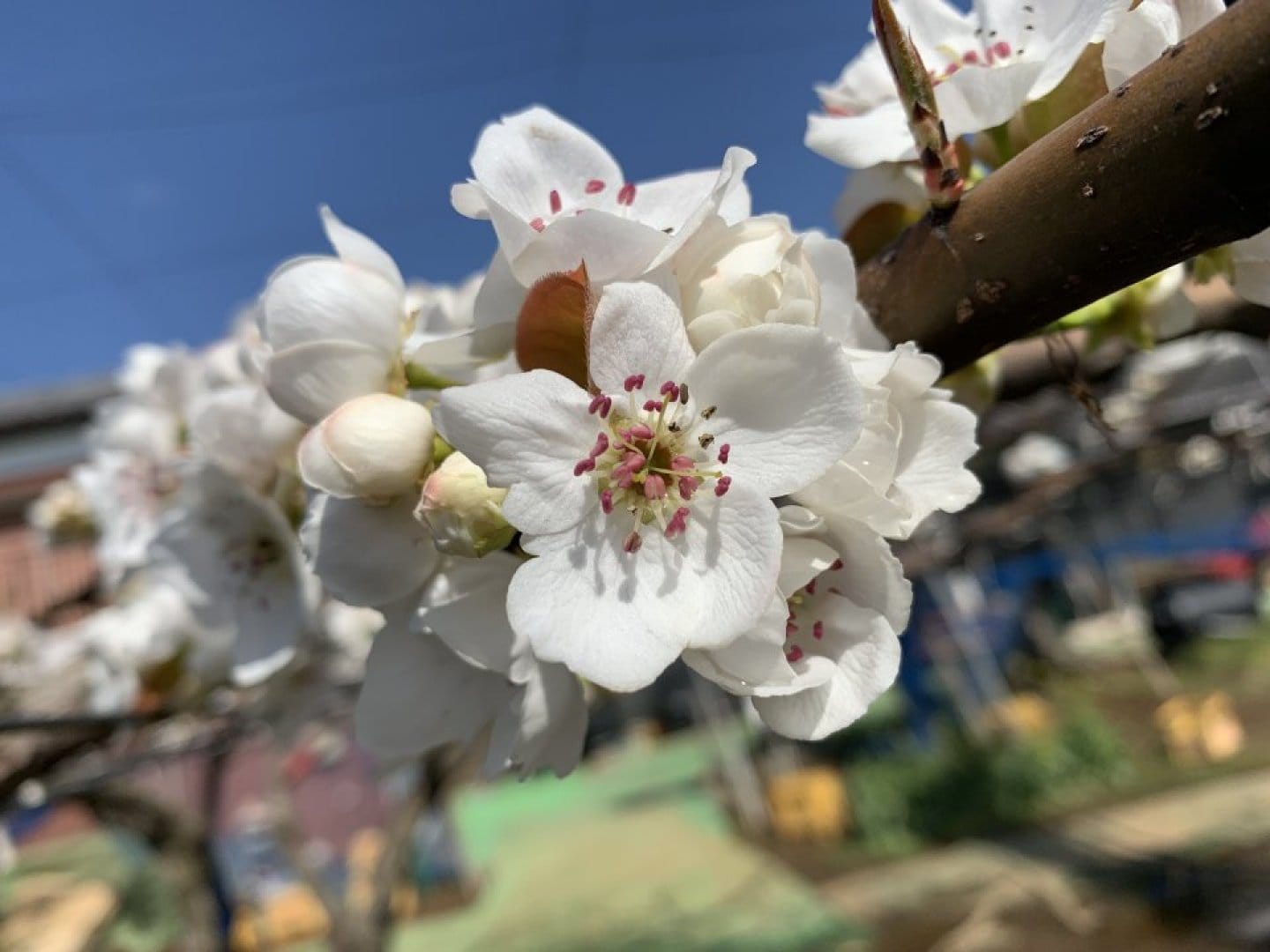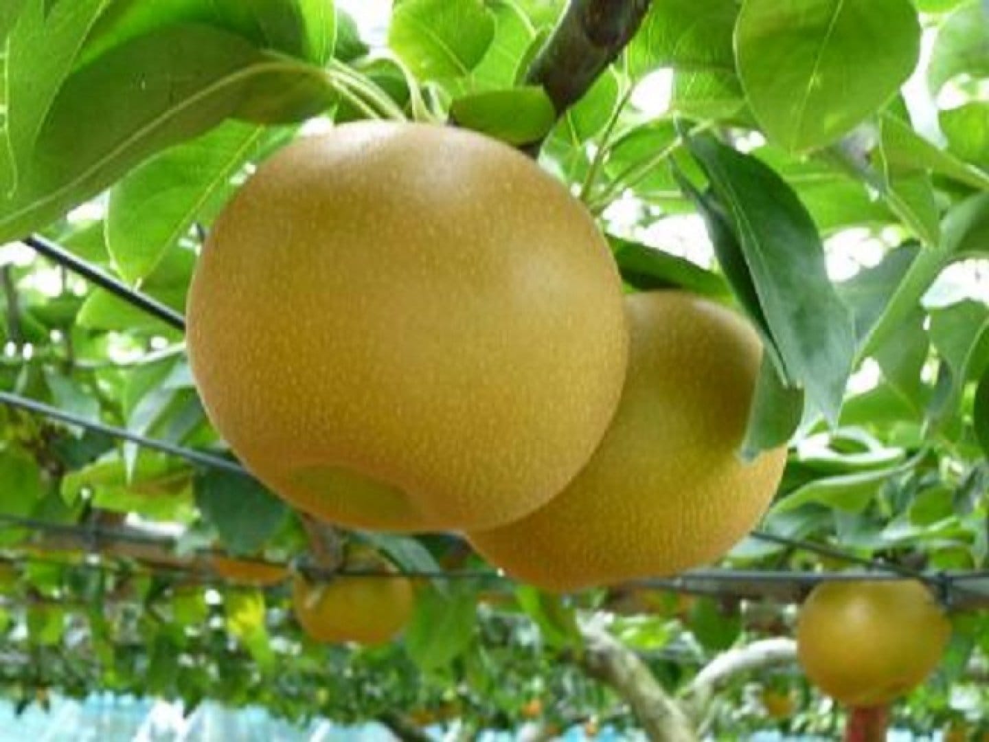 白くて綺麗な梨の花に一つ一つ交配作業を行い、小さな実がなり始めたら摘果を行います。梨園への害鳥・害虫・害獣の侵入を防ぐためにネットを張ります。