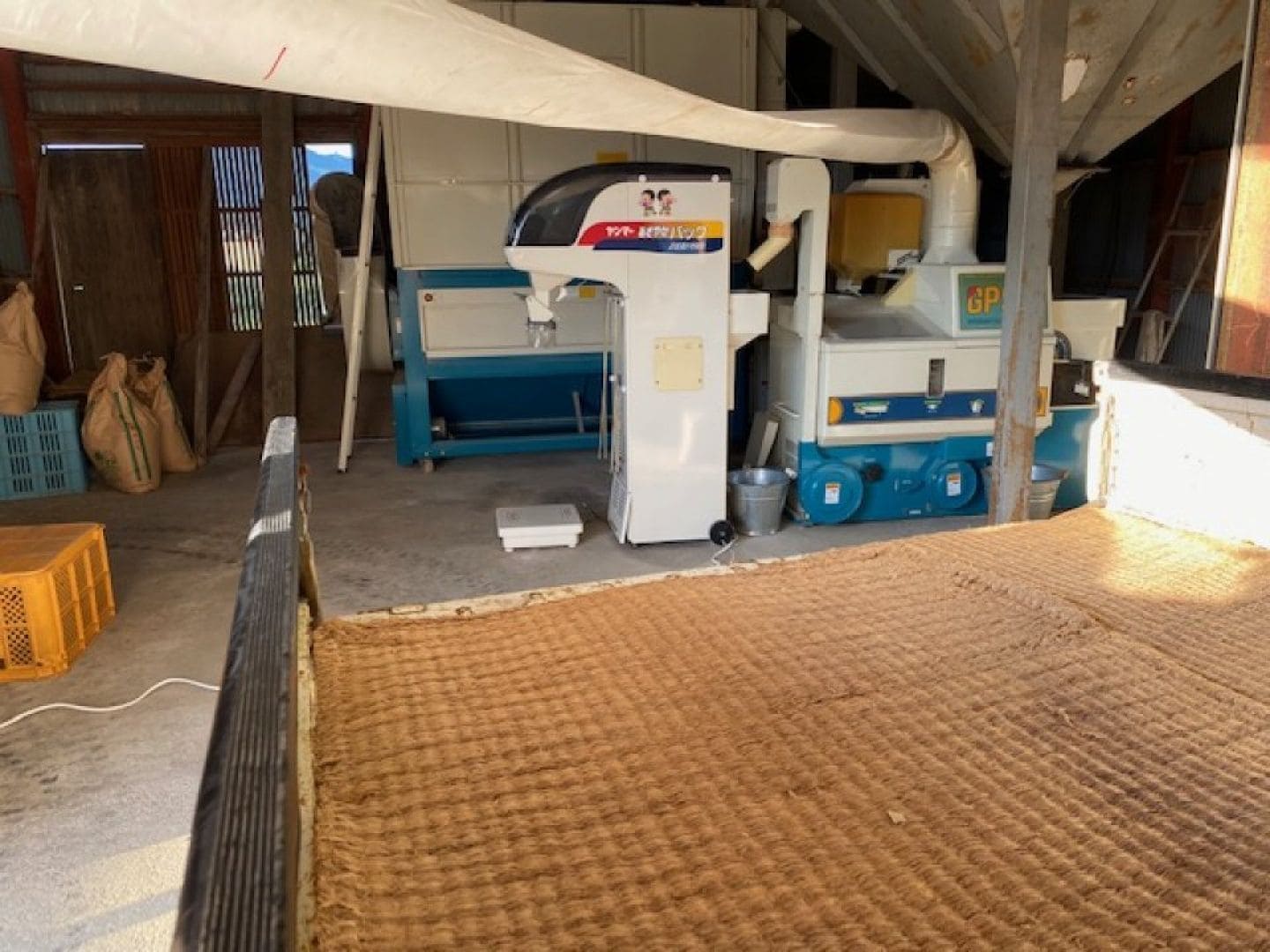 乾燥させたお米を籾摺りしていきます