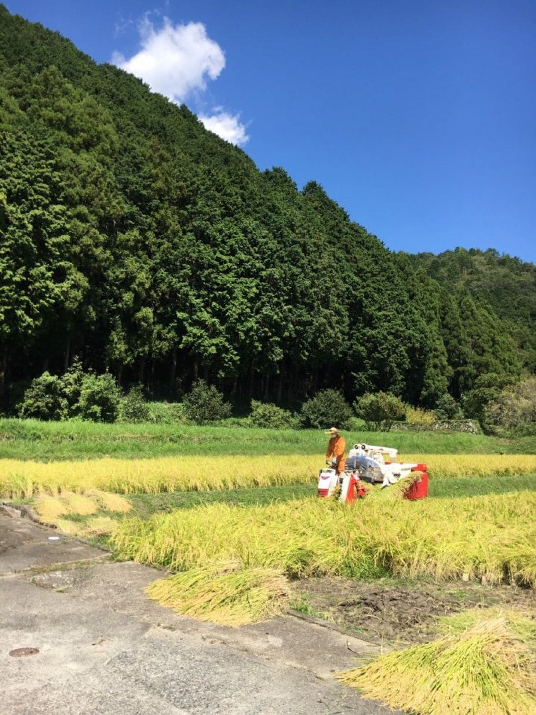 いい色してますね〜よくできてます(^^♪四隅は手で刈り取りしますが、そこからはコンバイン様で刈り取り中〜(^_-)-☆