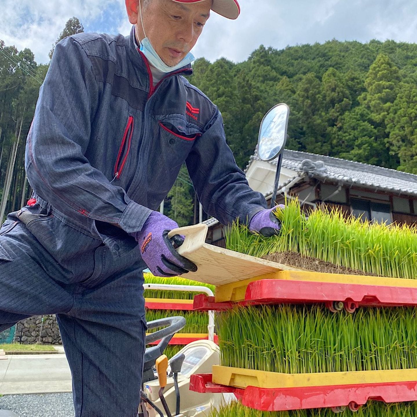 田植え機に苗を載せていきます。。。