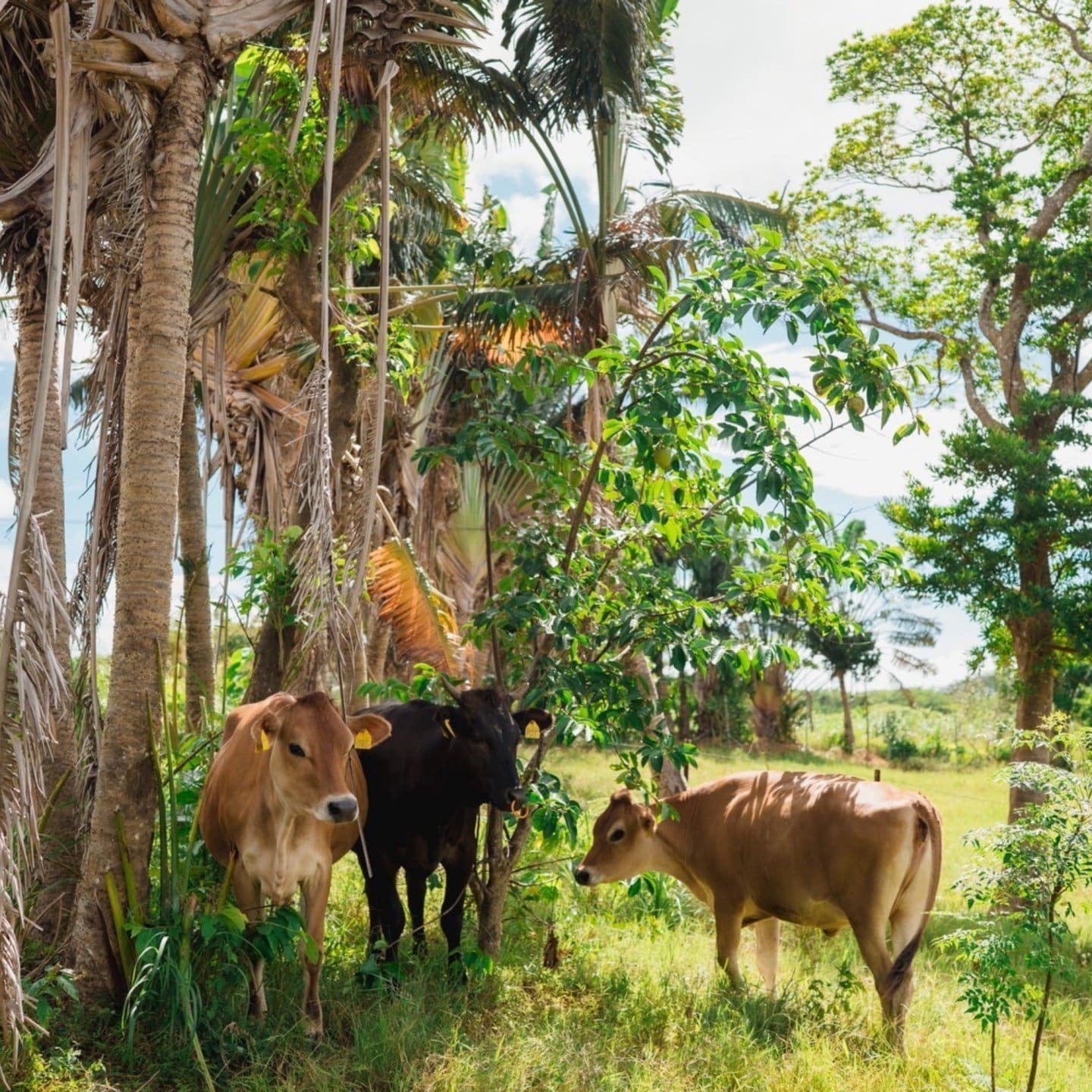 石垣島の自然に囲まれ、ジャージー牛やヤギ、犬や猫たちと暮らす小さな牧場。