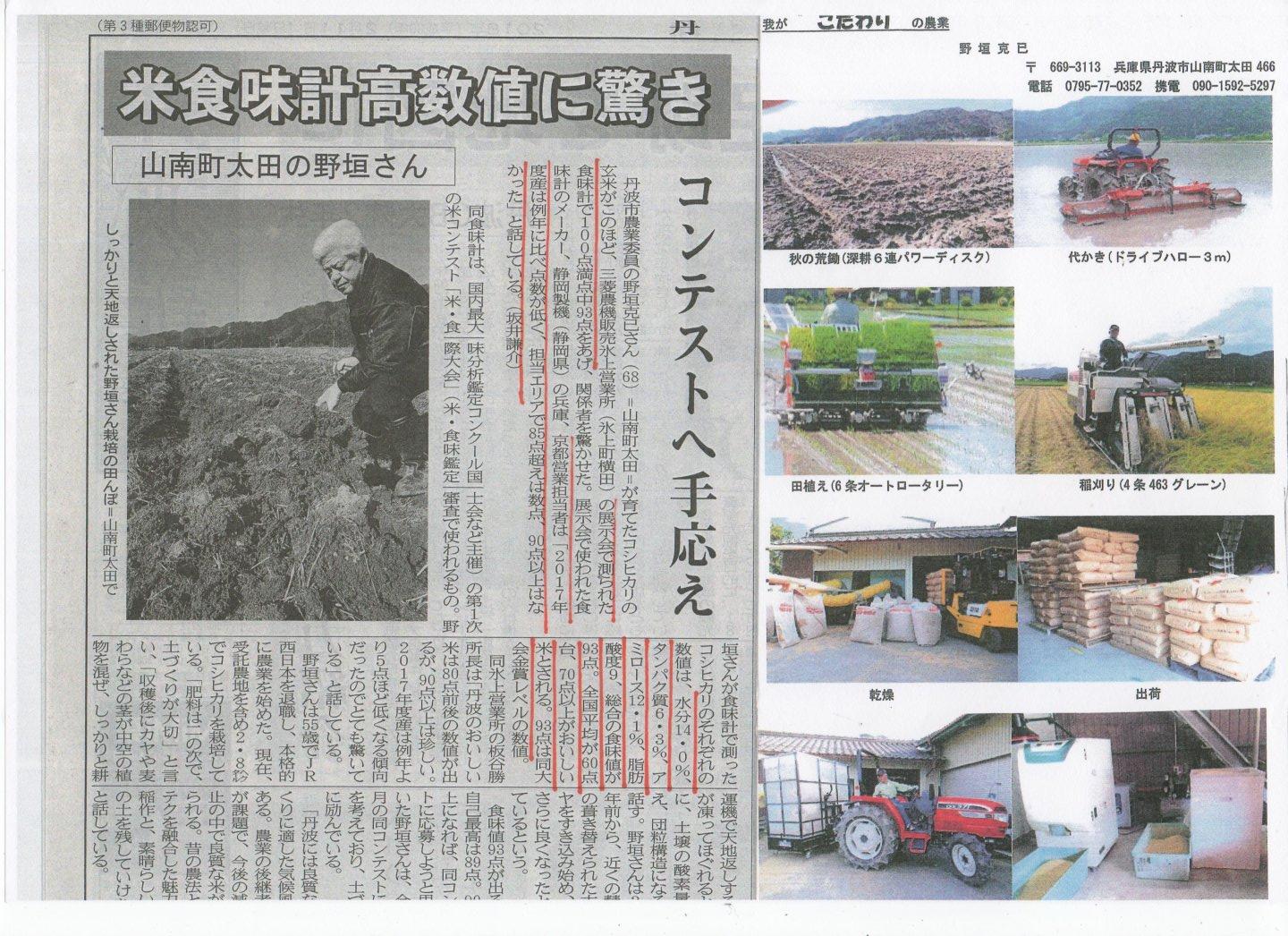 「丹波には良質な土作りに適した気候風土がある。今後の減反廃止の中で良質な米が求められる。昔の農法とハイテクを融合した魅力ある稲作と素晴らしい丹波の土を残していけたら」と更なるおいしいコメ作りにこだわりを持ち生産しております。