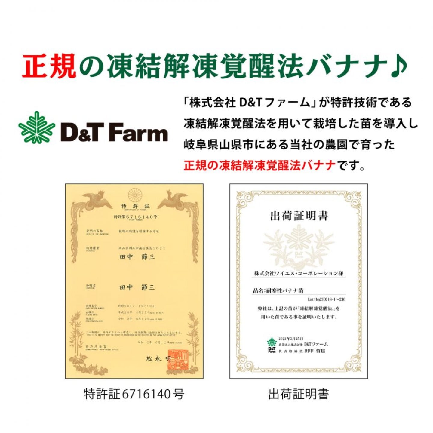 〜特許を取得している凍結解凍覚醒法バナナ〜