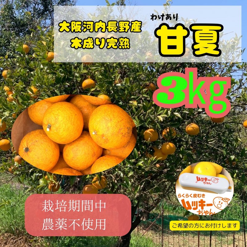 【数量限定 送料込み】大阪府河内長野市産、甘夏(あまなつ)ご家庭用約3kg ご希望の方に皮むき器ムッキーちゃんお付けします送料込み・北海道・北東北(青森・秋田・岩手)・沖縄は別途送料必要