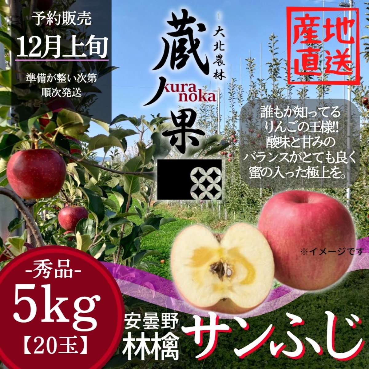 商品名 サンふじ【5kg-20玉】長野県安曇野産りんご/予約販売