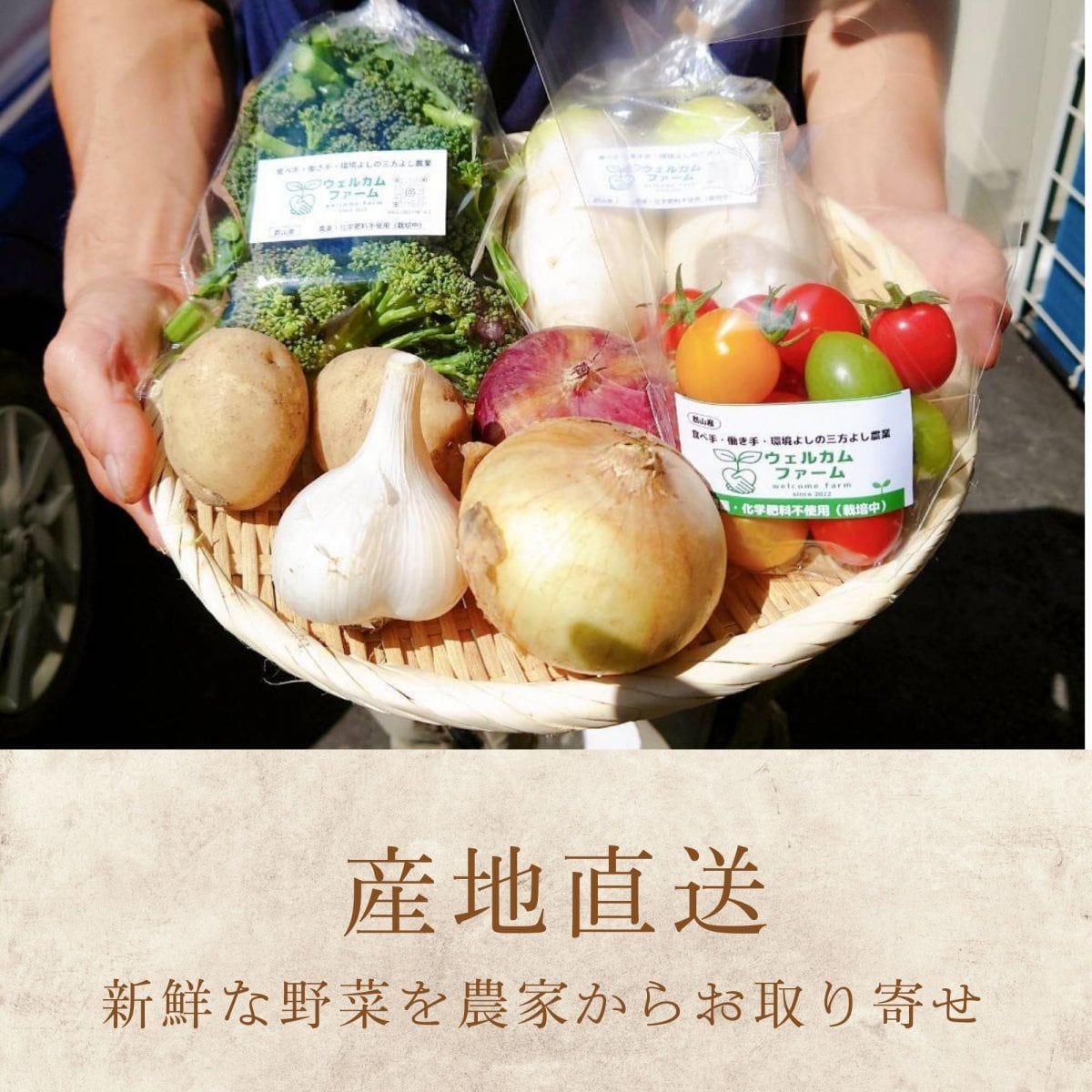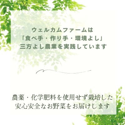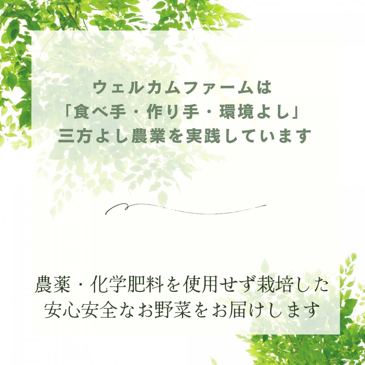 野菜は全て農薬・化学肥料栽培不使用で栽培しています。安全・安心の採れたて旬野菜を、セットにして農園から産地直送いたします。