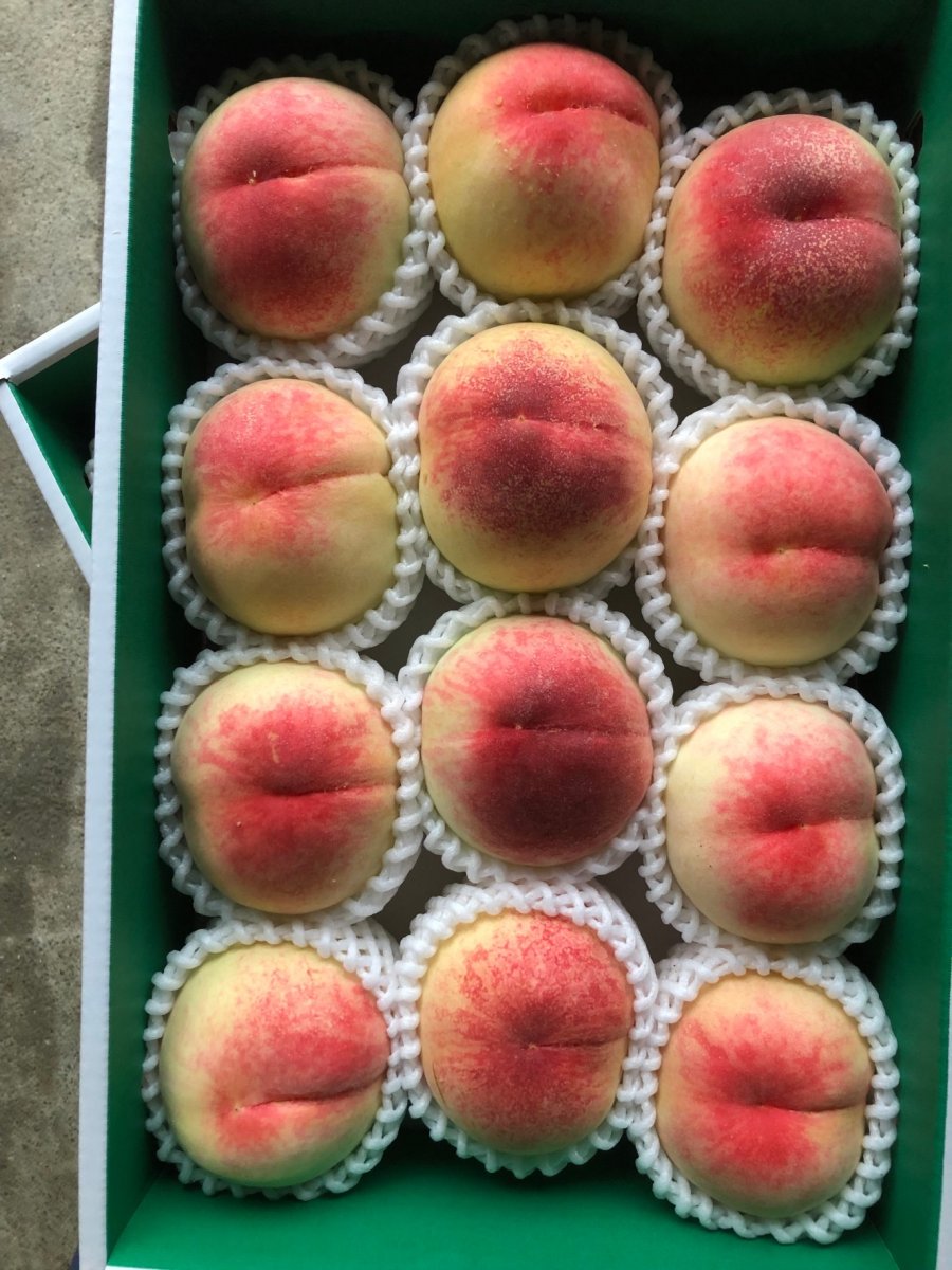桃の代表的な品種の一つです。1933年に命名 発表されてから今も人気が続いています。地色は白く 日光に当たる部分が紅色に染まります。ジューシーで果汁が多く甘味も十分で美味しい桃です。