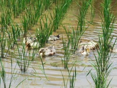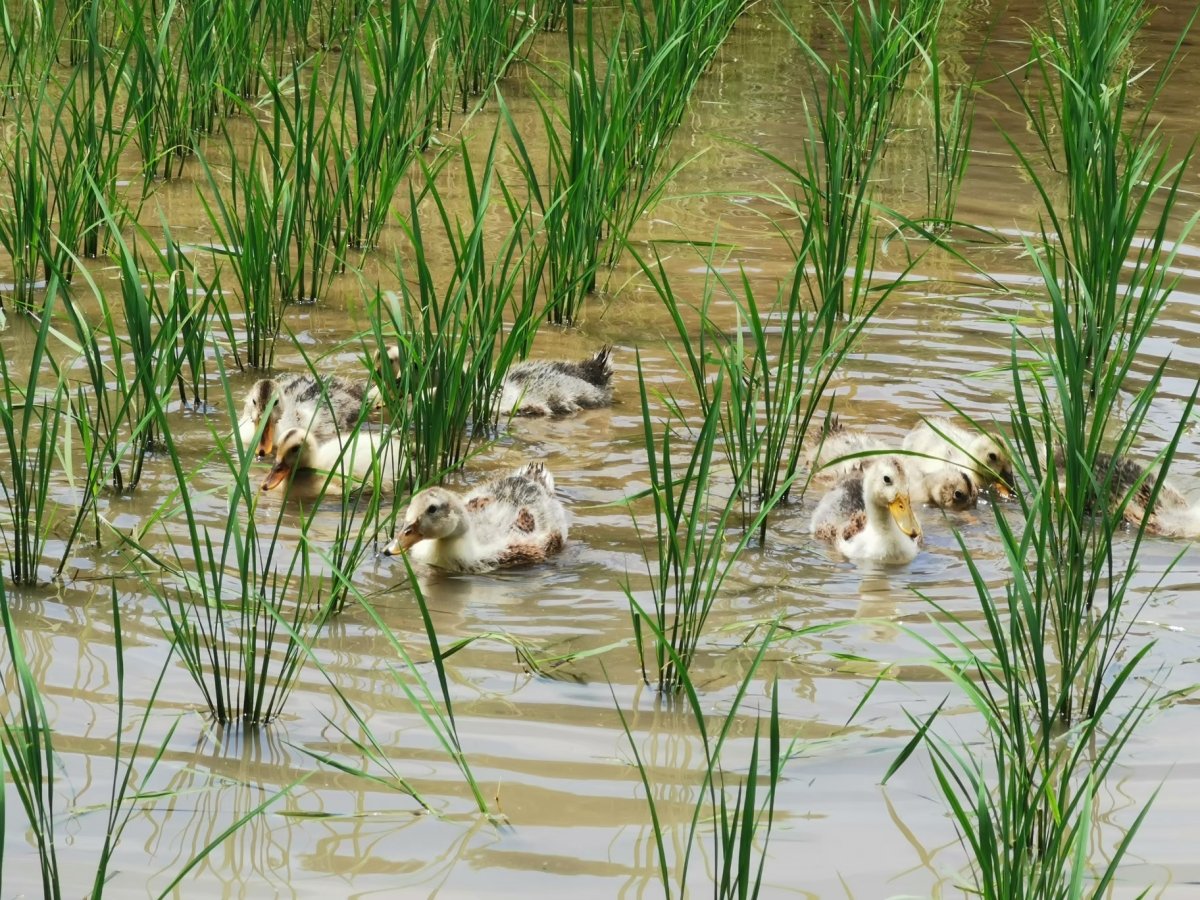 一部、アイガモ農法も取り入れています。 (有機JAS取得米)