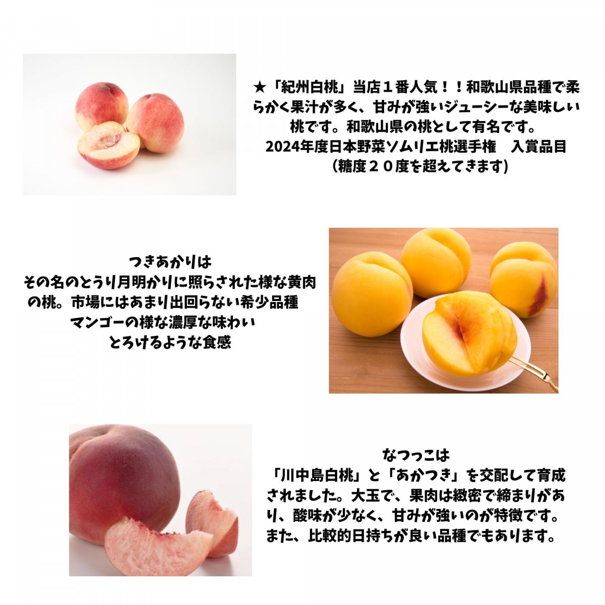 2024年度日本野菜ソムリエ桃選手権 入賞品目(糖度20度を超えてきます)