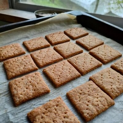 小麦粉(国産)・ダイシもち麦粉(自家製粉)・粗糖・米油・アデア牛乳・メープルシュガー・塩・シナモン・ベーキングパウダー(アルミフリー)