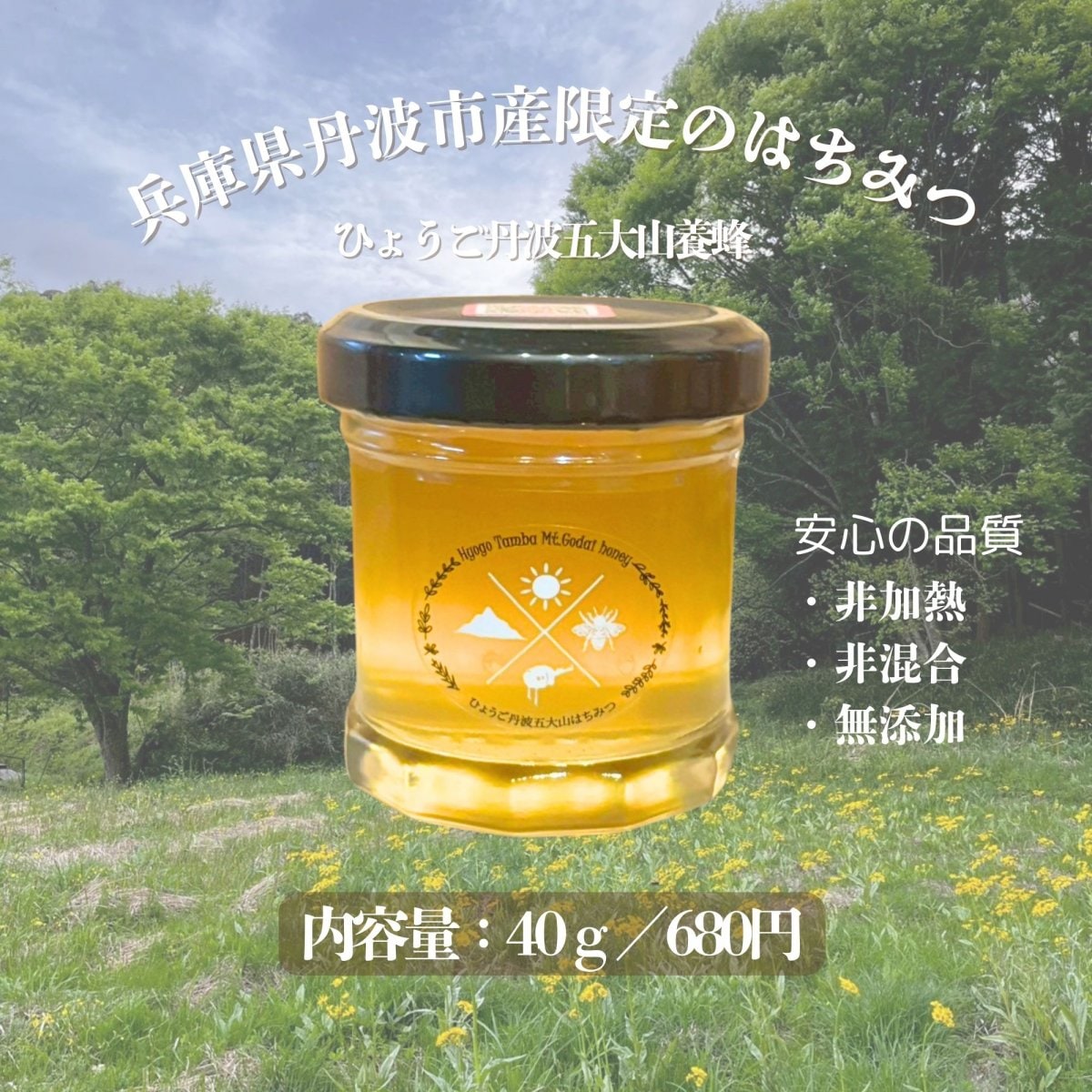 商品名 はちみつ40g/ひょうご丹波五大山養蜂/非加熱、非混合、無添加の丹波市産限定ハチミツ【産直】