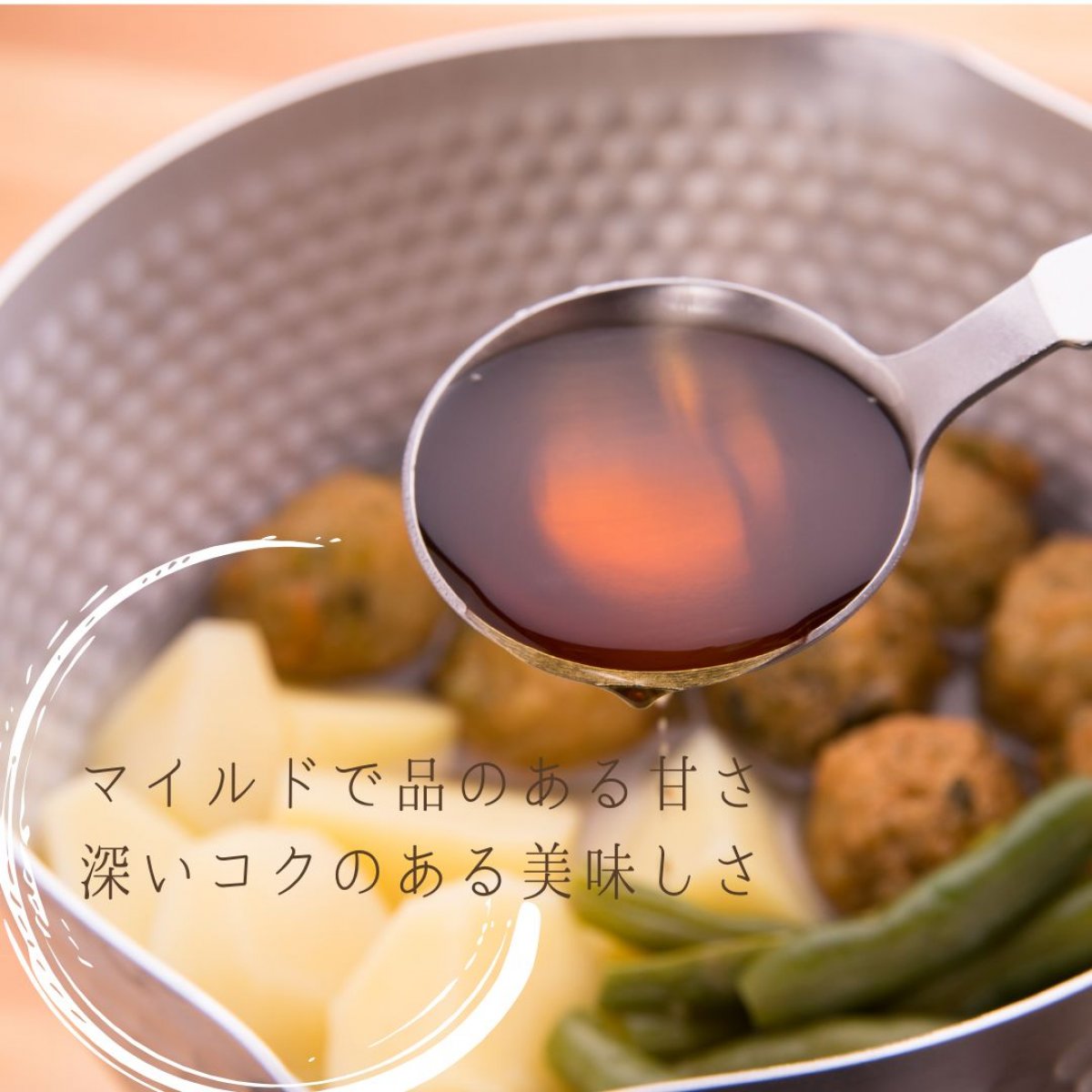 本みりんは、甘みがブドウ糖やオリゴ糖などの多種類の糖類で構成されているため、砂糖に比べてやわらかで上品。