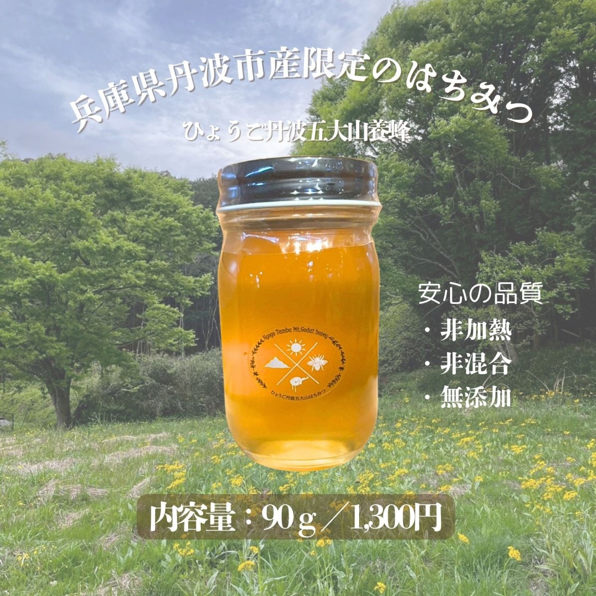 商品名 はちみつ90g/ひょうご丹波五大山養蜂/非加熱、非混合、無添加の丹波市産限定ハチミツ【産直】