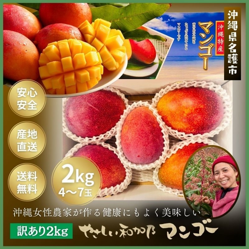 【家庭用2kg(4〜7玉)】沖縄県やんばる産こだわり栽培「やさしい和加乃マンゴー」送料無料クール便対応 *農家直送7月中旬発送開始予定