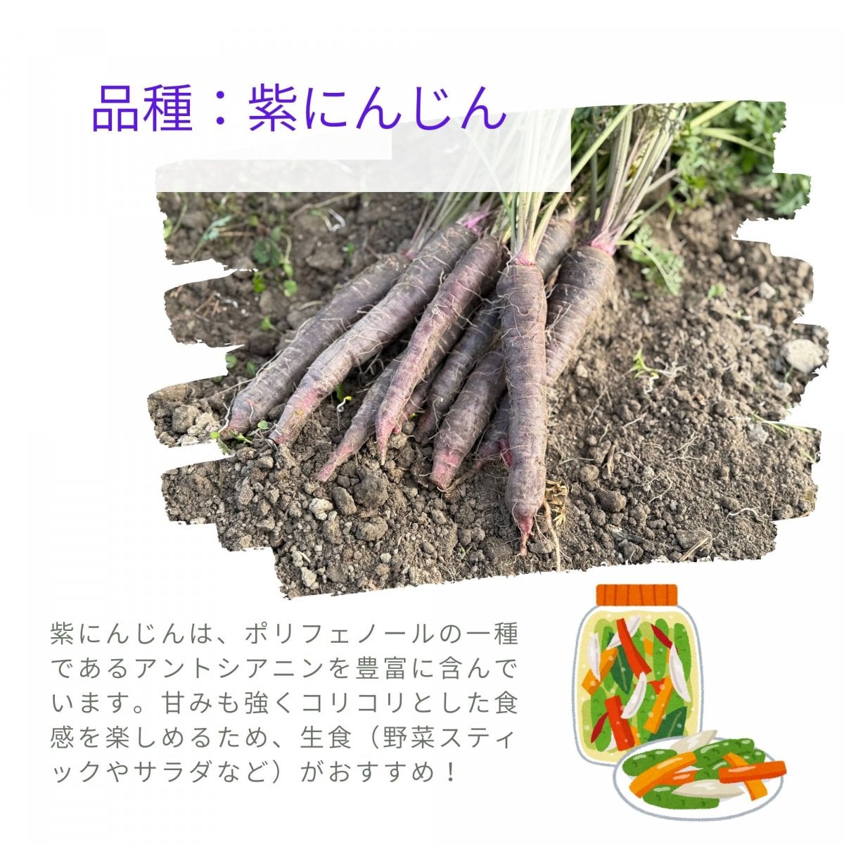 特に「紫にんじん」は、市場に流通していない希少な人参です。是非ご賞味ください。